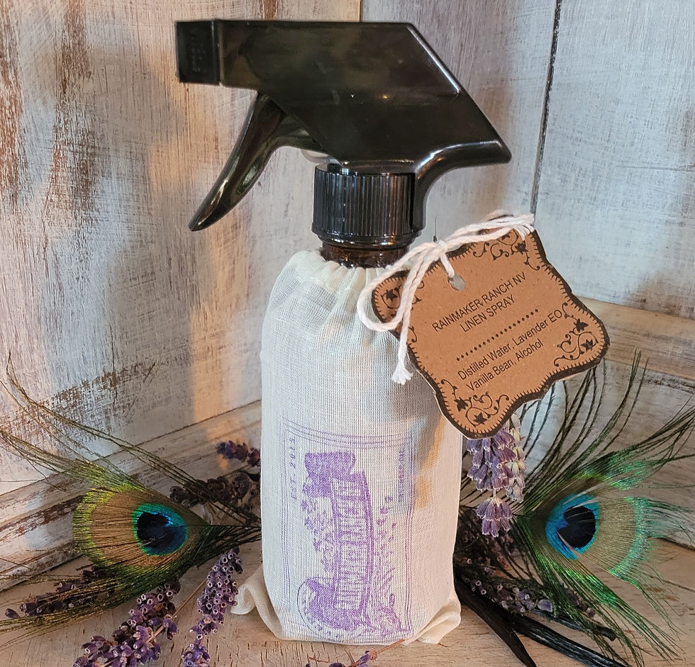 Our Lavender Vanilla Linen Spray is made with distilled water and a small amount of alcohol. Added to that are Essential Oil, and a unique blend of ingredients that will transform your linens into a soothing haven.